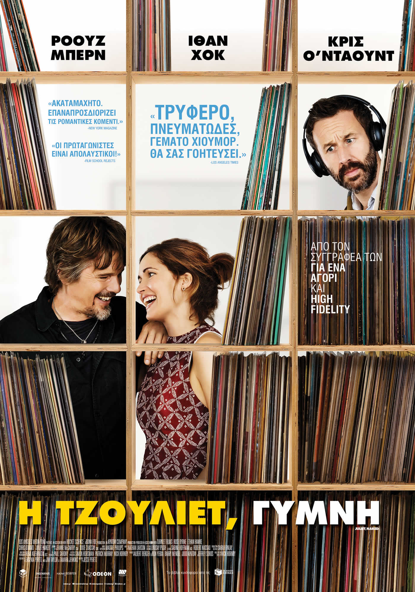 Στο σινεμά που στηρίζεται στο λογοτεχνικό σύμπαν του Νικ Χόρνμπι, που δικαιούται να οργανώσει κανείς σε μια ειδική συνωμοταξία μιας και οι ταινίες είναι συγγενικότατες μεταξύ τους, ανδρικοί χαρακτήρες γεμάτοι λόξες, γούστα, χόμπι κι εμμονές, βασανίζονται από τις συνέπειες της ενστικτώδους ερωτικής τους επιθυμίας, αρνούμενοι να ενηλικιωθούν. Η διαφοροποίηση του «Η Τζουλιέτ, Γυμνή», είναι πως «κλέβει» έναν γυναικείο χαρακτήρα από τον κόσμο των ταινιών που ο Χόρνμπι σεναριογράφησε («Μια Κάποια Εκπαίδευση», «Μπρούκλιν»), τον βάζει στο επίκεντρο του φιλμ και τον αντιπαραθέτει με εύστοχα δορυφορικούς ανδρικούς χαρακτήρες.
