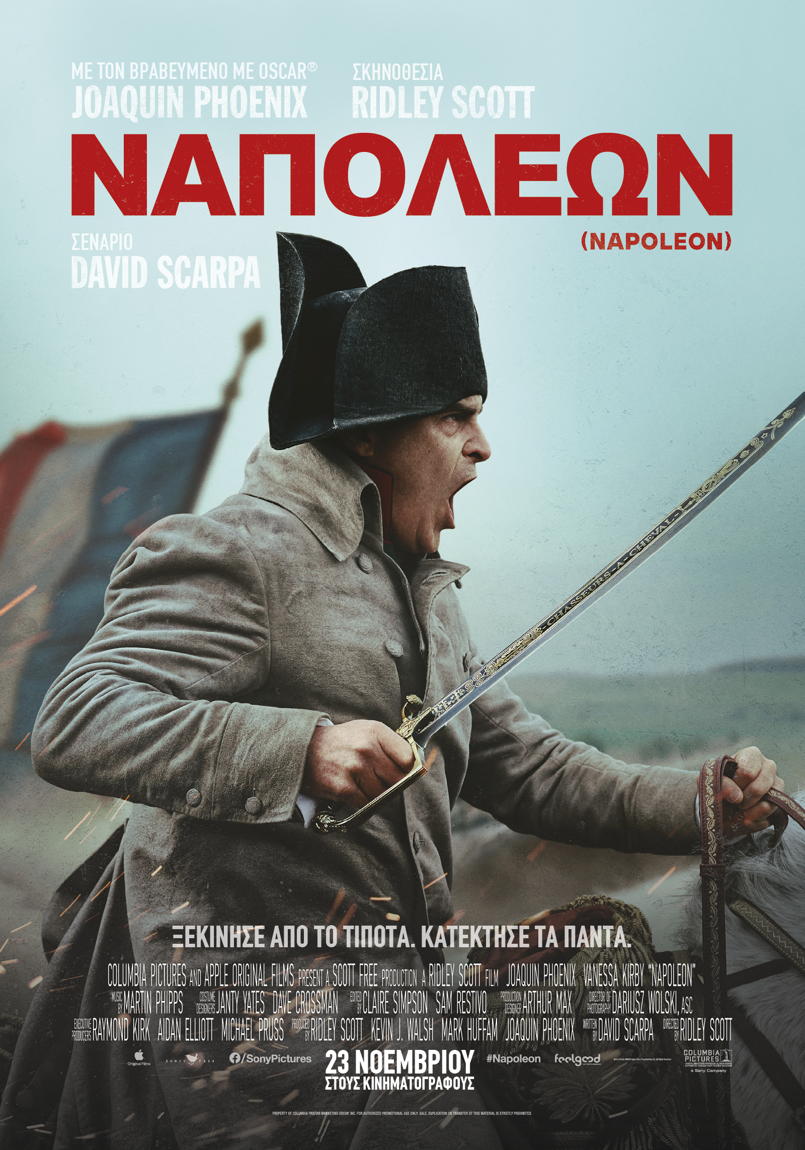 Έλα, όμως, που Σκοτ είναι (και) ένας …στρατηλάτης της μεγάλης οθόνης. Λίγα πράγματα αγαπά όσο το στήσιμο ενός set-piece μάχης, με την ανάδειξη της δομής της και του μεγέθους της. Κι ακριβώς επειδή το αγαπά στα όρια του φετιχισμού και το σέβεται, εκεί το ύφος σοβαρεύει, θα μπορούσες να υποστηρίξεις ότι ο «Ναπολέων» μεταμορφώνεται σε άλλη ταινία. Το επικό κρεσέντο επιτυγχάνεται στη μάχη του Άουστερλιτς, όπου με εντυπωσιακή σαφήνεια και εικαστική έμπνευση αντιλαμβανόμαστε τον φόρο αίματος που πληρώθηκε. Τα πράγματα γίνονται λίγο πιο συμβατικά στο Βατερλώ, μα αν αναλογιστείς ότι αυτό που βλέπεις στην οθόνη είναι προϊόν ενός 86χρονου δημιουργού και ότι άνθρωποι με τα μισά του χρόνια και ακόμα μεγαλύτερους προϋπολογισμούς δεν διαθέτουν ίχνος επικής στόφας και αφήνονται στους τεχνικούς των οπτικών εφέ για να καλύψουν (ανεπιτυχώς) την απουσία της, ε δεν μπορείς παρά να χειροκροτήσεις.