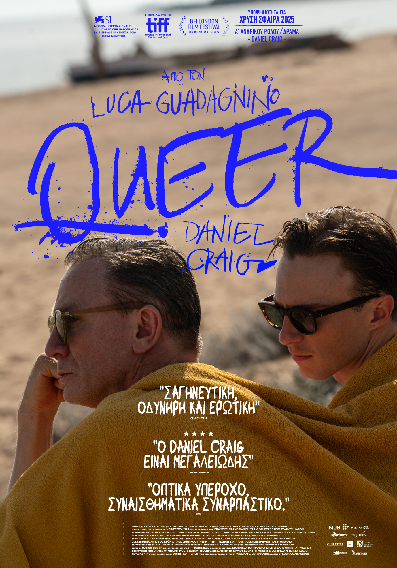 Τρυφερό ακόμη και στις πιο φορτισμένες ερωτικά στιγμές του, με μια μελαγχολία που χτίζεται σταδιακά και σε βάθος, γυρίσματα και σκηνικά που έγιναν στη θρυλική Τσινετσιτά και ενίοτε προσδίδουν έναν αέρα παραμυθένιο και μυθικό, τo «Queer» έχει μια εξαιρετική ερμηνεία από τον Ντάνιελ Κρεγκ, έναν Ντρου Στάρκι αρκούντως ελκυστικό και κρυπτικό να υποδύεται τον Τζιν, τους Τζέισον Σουόρτσμαν και Λέσλι Μάνβιλ αγνώριστους στους εκκεντρικούς δεύτερους ρόλους τους. Έχει επίσης ένα σάουντρακ από σύγχρονα τραγούδια τα οποία ενσωματώνονται αναχρονιστικά στην πλοκή, πότε με τρόπο εμπνευσμένο και δηλωτικό (όπως το «Come as you are» των Nirvana ή το «Leave me Alone» των New Order) και πότε άστοχο (το «Musicology» του Prince!). Αυτό που δεν υπάρχει στο φιλμ, και ενδεχομένως αποξενώσει μέρος του κοινού, είναι ξεκάθαρη δράση και τονική συνέπεια. Ο Γκουαντανίνο δοκιμάζει ένα σωρό διαφορετικά πράγματα, με έναν παράξενο τρόπο όμως καταφέρνει και τα ενώνει σε ένα παράξενο και ατίθασο σύνολο το οποίο, εκτός των άλλων, φαίνεται να ανατρέχει και σε θέματα από προηγούμενες ταινίες του, ενώ δεν φοβάται να εμπιστευτεί στο κοινό του ένα έξοχα σουρεαλιστικό φινάλε. Ό,τι κι αν συμβαίνει στο «Queer», πάντως, γίνεται με σεβασμό στο μυθιστορηματικό κόσμο και το πνεύμα του Γουίλιαμ Μπάροουζ. Γι' αυτό και η ταινία είναι, εν τέλει, όπως και τα βιβλία του. Όπως ήταν κι ο ίδιος: Ένα παράδοξο, ένα ρίσκο, ένα σκοτεινό σύμπαν ενστίκτων και ορμών.