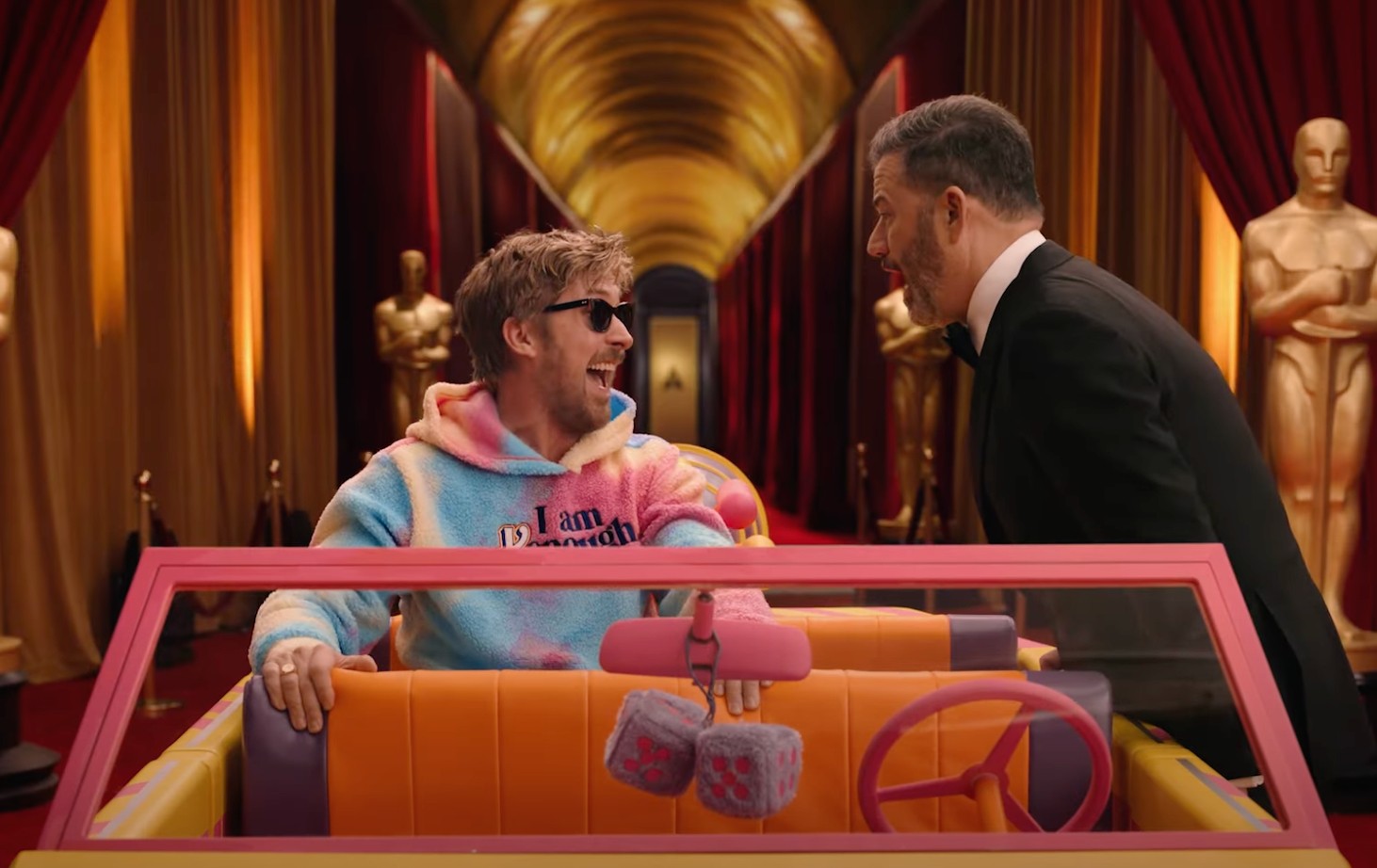 Στην αυθεντική πλακίτσα του πράγματος ο Τζίμι Κίμελ επιβεβαιώνει ότι έχει την φάτσα, το φλέγμα και το attitude να αντέξει την υπόθεση «οικοδεσπότης Όσκαρ» και στο βίντεο που θα δείτε «χάνεται» στην Barbieland και ζητά οδηγίες από την Κέιτ ΜακΚίνον για το πώς θα βρει την Oscarsland. Στην διαδρομή τρώει φάπες, ακούει πώς οι άντρες χάνονται συνέχεια, πώς δεν μεγαλώνουν ποτέ, βλέπει έναν κακάσχημο τύπο (τον Ματ Ντέιμον του «Oppenheimer» για να κρατάμε και τα beef προσχήματα) και αριβάροντας στο Dolby προκύπτει και κοτζάμ Κεν Γκόσλινγκ από το πίσω κάθισμα σε φάση «τουλάχιστον η Γκρέτα θα πάρει βραβείο». Οπότε και η Αμέρικα Φεράρα, που ως τότε έκανε ένα ριπλέι του αστείου λόγου που βρίσκεται υποψήφια στα ‘Όσκαρ εξηγώντας στον Κίμελ της δυσκολίες της παρουσίασης, του λέει στο αυτί τι πραγματικά συνέβη. Και όλοι, αλλά μετά σχεδόν όλοι, αρχίζουν να ουρλιάζουν. Δεν είναι εγγλέζικο το χιούμορ, εντάξει, αλλά την πλάκα του την έχει. Άσε που «διαβάζεται» και ποικιλοτρόπως.